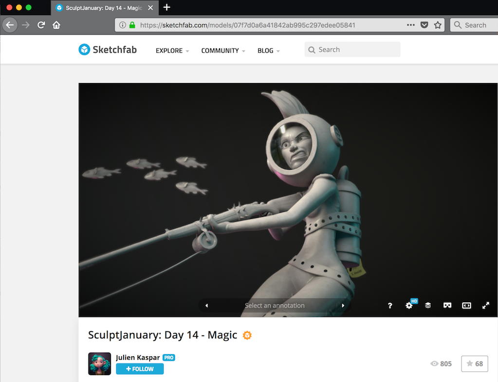 Today, when you visit a web page that contains WebVR content, the page itself presents an interface to let the user transition into VR. For example, a page on sketchfab.com contains a small image of a VR display in the toolbar overlaid on the 3D scene (the third icon in from the right):
