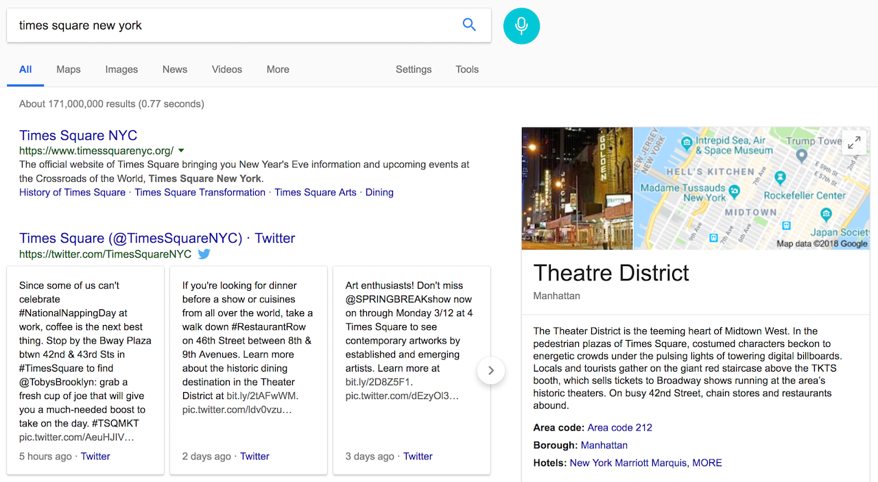 I mention this here because when presented with the idea of AR displays, many people imagine being immersed in a world where any content that has been created is available to them. But such a world is untenable; if I type āTimes Square New Yorkā into google.com, it returns 171 million results. Which of those should we display to users walking through Times Square? [2]