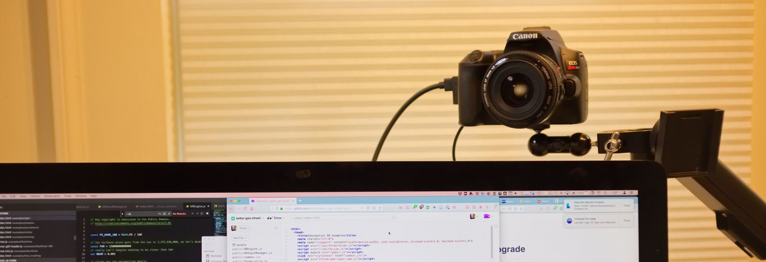 While I'm not a "streamer", as a remote worker I spend a lot of time in video conferences. So, I decided to take the plunge on my work computer, taking advantage of the unused second arm on my dual-monitor arm setup to mount a DSLR above my monitor. (I used to use dual monitors, but since getting a 27" imac, I got rid of the second one).