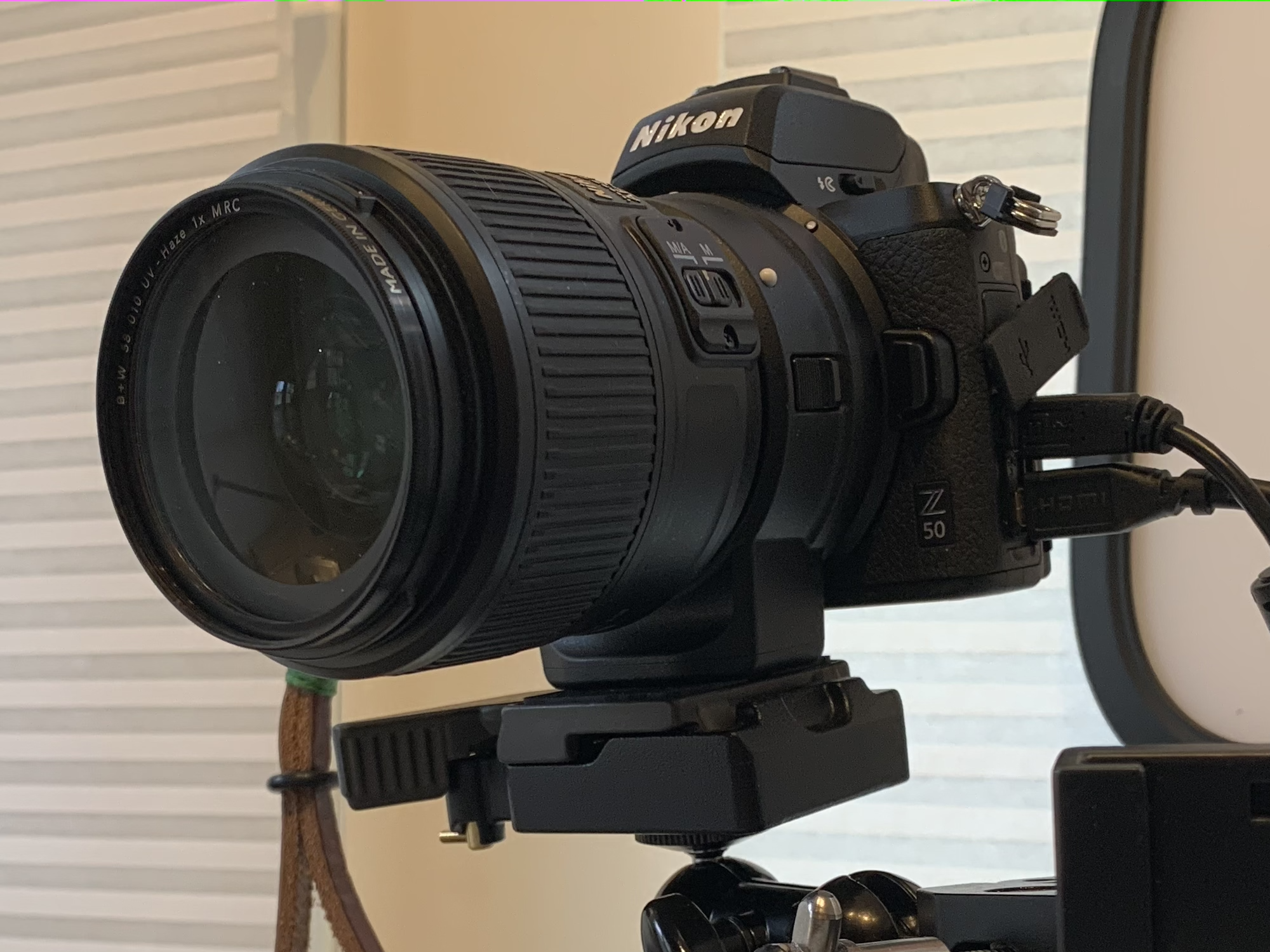 I had bought a Canon SL3 as my webcam, and put an f/1.8 lens on it. The images were good (but not quite as good as the Z-50 image above), but the camera had two huge fatal flaws. Â First, unlike it's predecessor, it was impossible to disable the 30 minute shutoff when using live-view unattended. Â Having the camera shut off during calls was getting quite annoying. Â Second, you couldn't enable auto-focus without having the focus-boxes appear in the video. Â The Z-50 has neither of those problems (and, like I imply, the video quality is vastly better).