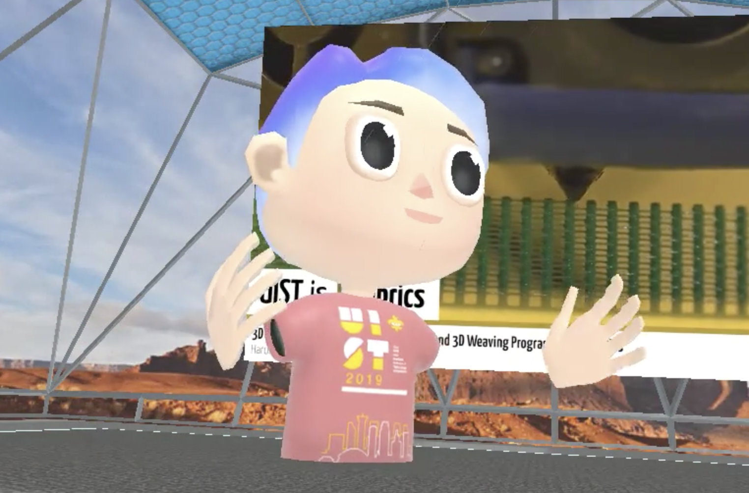 A year or so ago, Kyle Johnsen asked me to co-chair VR 2020 with him, Ed Swan, and Kiyoshi Kiyokawa.  I agreed, on the condition we would have some sort of significant online component, aimed at making progress toward the goal of allowing people to attend academic conferences without having to travel. I'd been increasingly interested in rethinking academic conferences, for both accessibility (not  everyone can travel to every conference, for all sorts of reasons) and  sustainability (we need to reduce the carbon we are spewing into the  atmosphere, and needless long haul flights are a big part of an  researcher's carbon footprint).